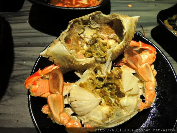 我是放在火鍋裡面煮,打開殼~裡面還有一點蟹膏耶,嚐起來是很香濃並帶點苦甘滋味~~