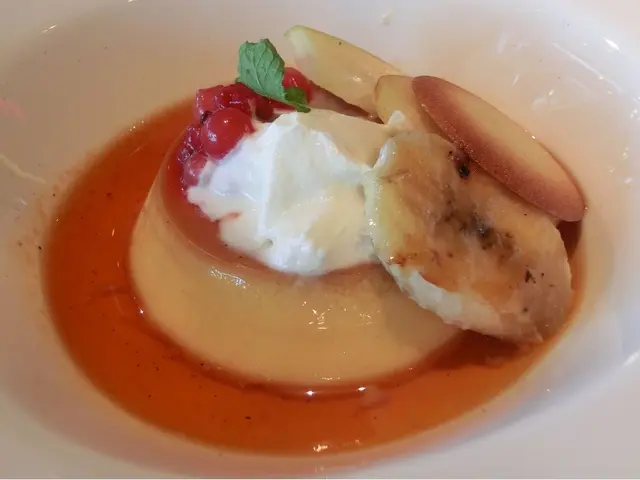 上頭還有香蕉及蘋果片,吃下布丁,每口都有濃濃的焦糖香及蛋香,讓我們很快的完食,然後繼續坐著聊天喝茶,最後心滿意足結束聚會,並期待下次與好友的美食之約