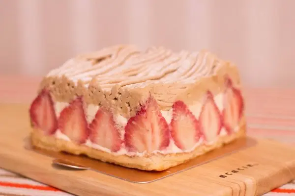 ◆ 白色乳酪草莓塔佐法國栗子泥