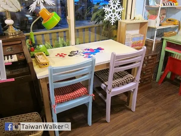 很有童風的桌椅, 牆壁, 擺設跟玩具. 我就自己一個人去, 所以點好餐之後拿著相機一直拍. 可能我去的時候時間就是在下午茶結束跟晚餐之間, 人就只有1,2桌. 就更好拍也更方便看著那些有趣的擺設