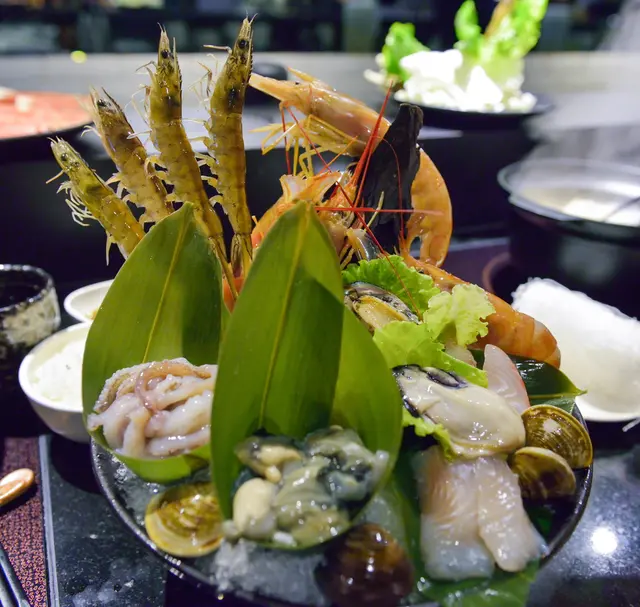 火鍋菜盤料很豐富,居然還有蛤和鮮蝦