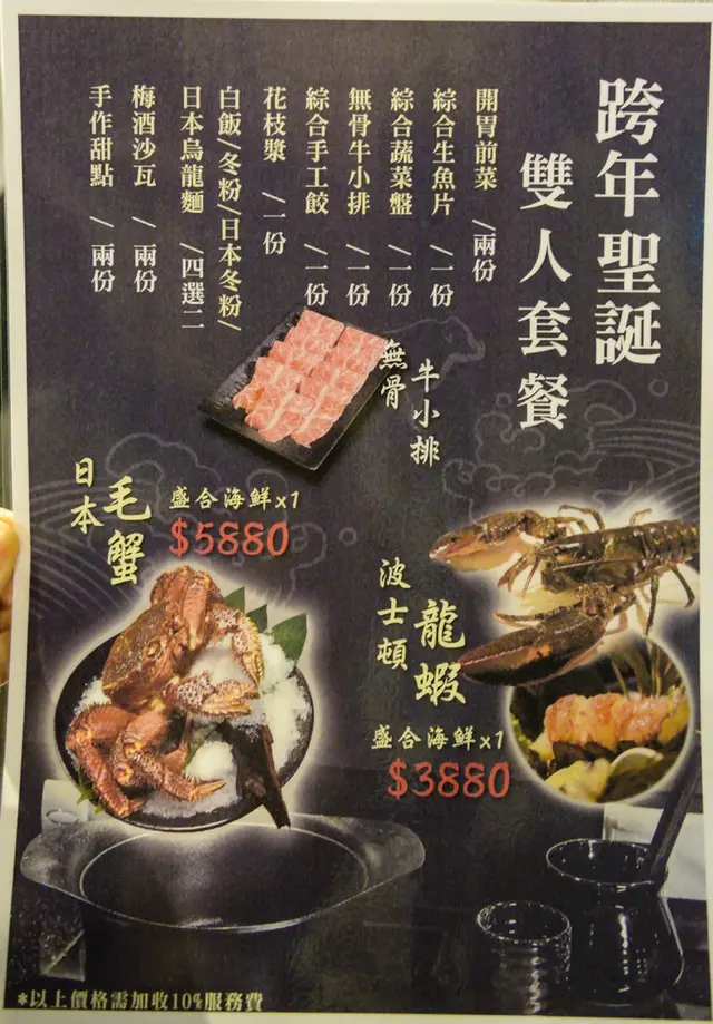 點了梅花豬鍋340+頂級盛和海鮮1280(主廚推薦選擇天使龍蝦)
