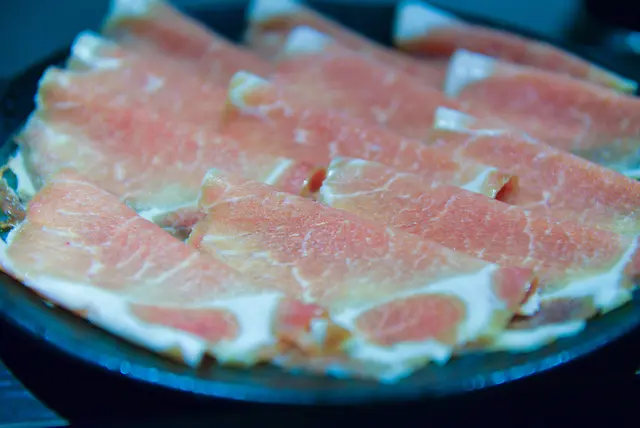 梅花豬肉,肉頗厚的,吃起來有份量