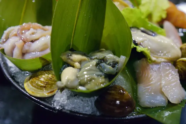 料真的讓人看了眼花撩亂,有蚵仔,魚片,蛤,生蠔,透抽,鮑魚,活蝦,干貝
