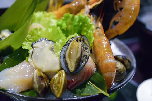 蝦子和鮑魚都是活的,很新鮮,煮一下就可以馬上享用