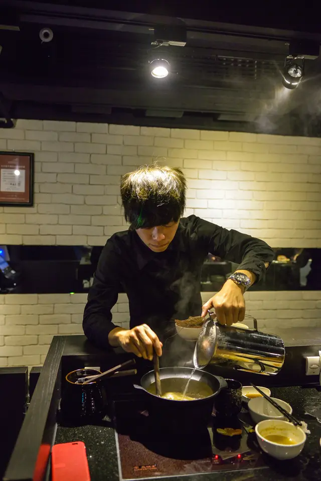 每桌旁邊都有個服務鈴,想加湯或幹嘛的都可以直接按,馬上幫你服務