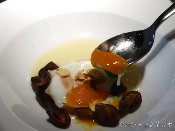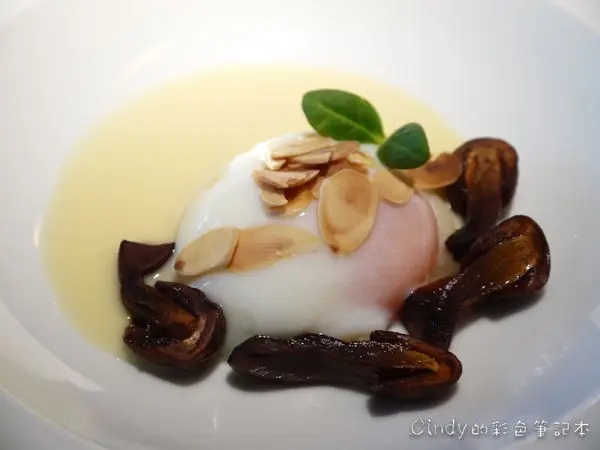 開胃菜-舒肥帝王蛋佐在地香檳茸、杏仁片