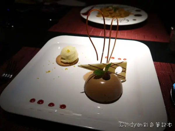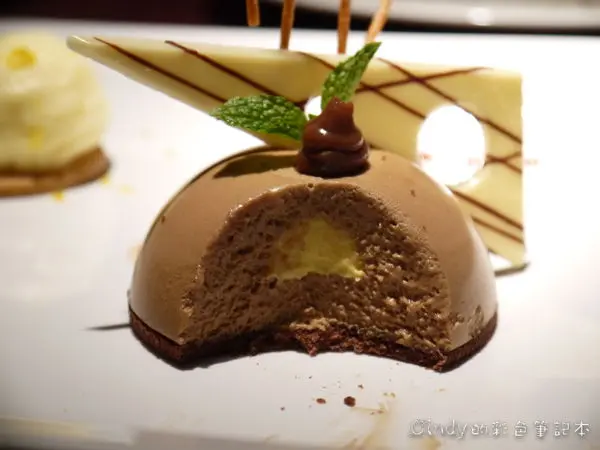 巧克力慕斯意外的不甜又香 口感綿密又細緻~~果然為這裡的招牌甜點