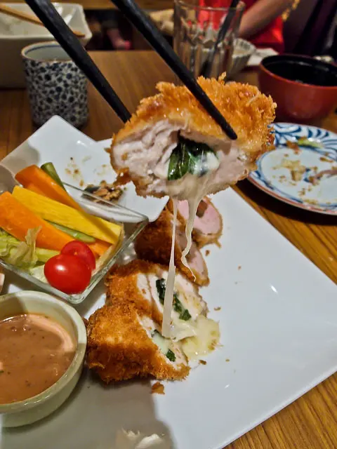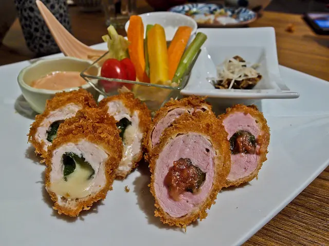 腰內肉加上紫蘇梅以及雞肉加上起司的作法, 搭配蔬菜與沙拉, 完全的女性取向