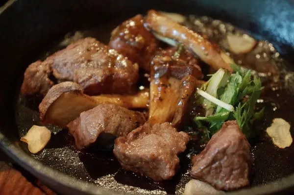 上面淋了黑胡椒醬