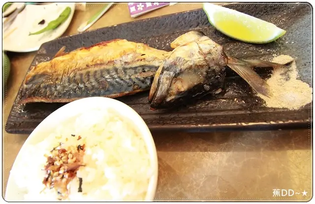 沒錯!這次噗爸又沒選擇權了,原本主要考量阿噗能一起分食,不過噗嬤吃不下『豬肉蓋飯』,所以給阿噗的量也很足夠吃了,噗爸就只好勉為其難的自己享用『烤日本鯖魚定食』了(屁~),『金泰』給了大半片烤鯖魚,魚皮烤的金黃且肉質很嫩,非常對噗爸胃口。
