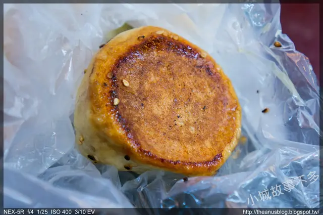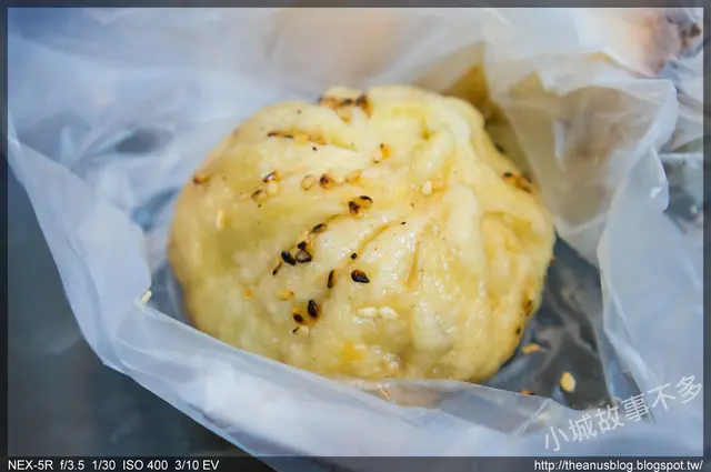 而這生煎包我最喜歡的地方,除了內餡外,就是其底層,但是這裡我必須要說,它的品質不太穩定!有時候火侯和時間掌握得當,底層吃起來又脆又香;但有時候...則是吃起來硬硬的,不過這很憑運氣,以我吃過的經驗,應該會有二分之一到三分之一的機率買到吃起來比較硬的,像我今天的運氣就比較不好,買到的是煎的比較硬的,不過先別管這個了,你有聽過安麗嗎?(大誤),其實整個還是不錯吃的,底下繼續介紹兩種口味內餡的不同