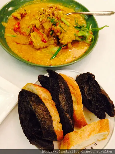 咖哩軟殼蟹的蟹煮的鬆軟,毫不費力就能帶殼咬下,蟹肉和濃稠的咖哩醬幾乎融為一體,吃起來多汁夠味,非常下飯的料理。隨著咖哩蟹附上的麵包,將咖哩醬抹在麵包上,一口蟹肉,一口咖哩麵包,這是我們更喜歡的吃法。