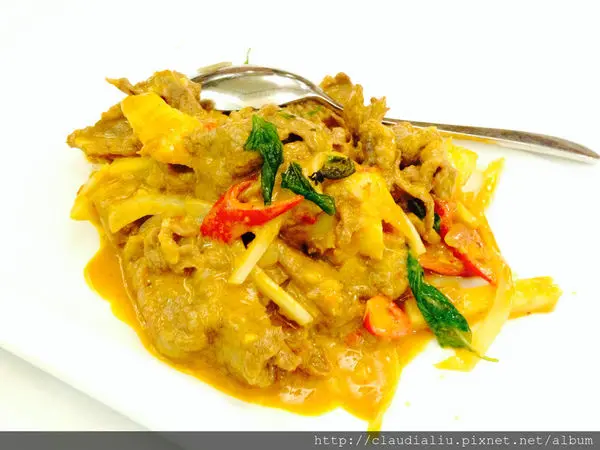 因為朋友喜愛各種調味較重的料理,因此在參考各家餐廳菜色後,我訂了晶湯匙。那日點了咖哩軟殼蟹、辣炒椰汁牛肉、蝦醬四季豆、泰式檸檬雞和摩摩喳喳。