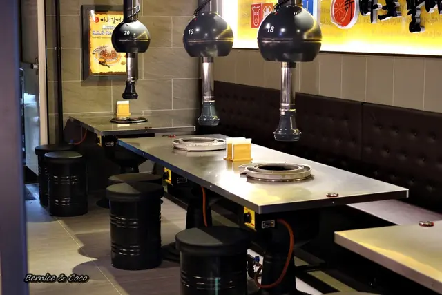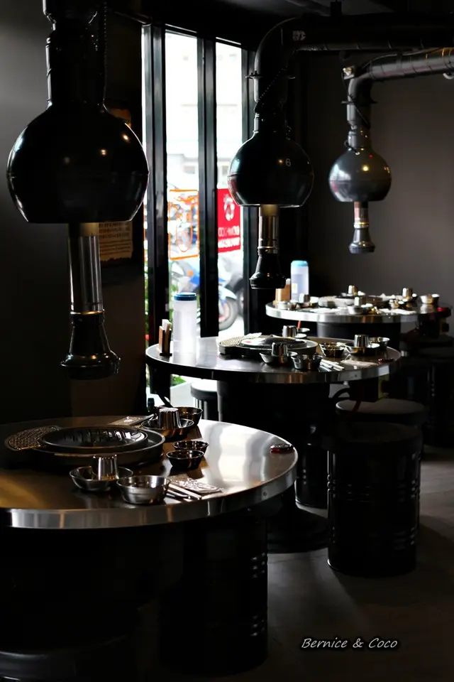 跟台式烤肉不同的是韓國烤肉盤是圓型的 連吸油器也是圓的