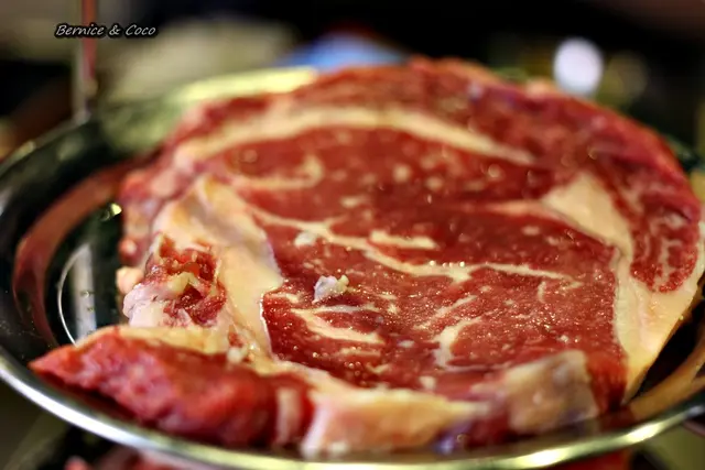 擁有大理石花紋的牛小排 肉質稍硬些但也比較要嚼感