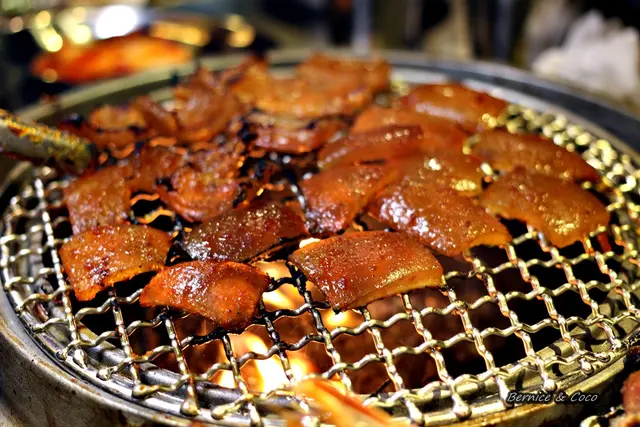 網子狀的烤盤看得到火光,感覺好像中秋烤肉