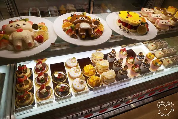 冷藏櫃裡擺滿懶懶熊的甜點們