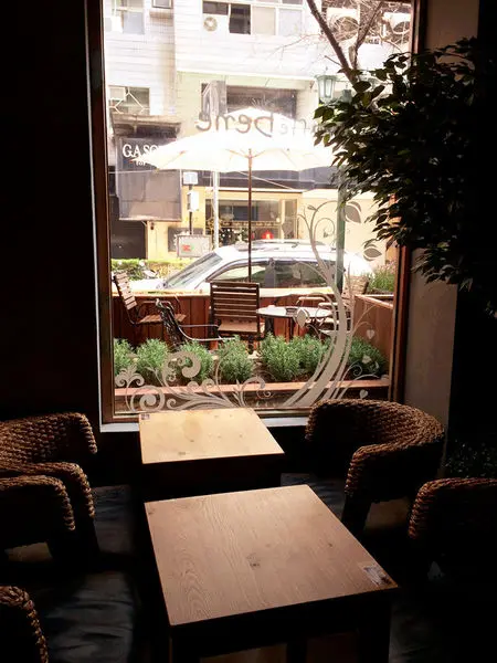 caffe' bene 的坐位比它的門面看起來還要多太多了,算很深,動線也還不錯,就是位置和位置間窄了點,沒能像台中高雄的店那樣寬場。最底那邊還有個門可以出去,出去後是個沒什麼整理的廣場,不知道之後是不是會有什麼規劃?!
