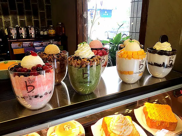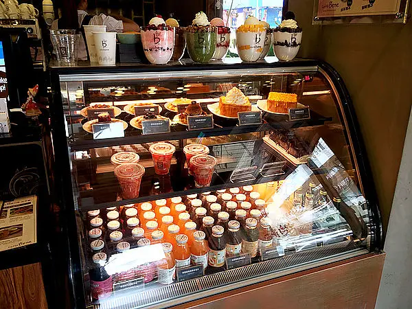也是一樣要自己去櫃台點餐、自己去取餐,吃完也要把盤子放到回收區,只是裝潢不太一樣,也沒什麼蛋糕類,主打更多的冰品,也沒什麼正餐,比較偏純喝飲料、純吃冰、吃甜點的純咖啡店,不像台灣很多後來自己開的咖啡店還會賣許多輕食,想吃正餐的也許這裡不是這麼適合啦 (早餐還OK)!!