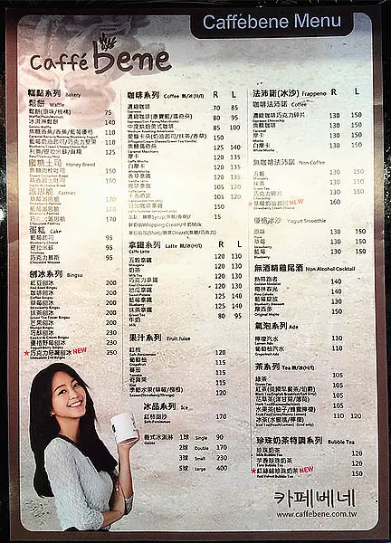 覺得韓國人行銷很強,先從戲劇、文化、時尚開始,瘋狂攻佔其他國家,然後開始行銷韓國品牌,從服裝、3C、食物哪個不是在近年深入滲透全亞洲的,這間 caffe' bene 甚至連新加坡、日本、菲律賓、美國、柬埔寨、印尼、馬來西亞、沙烏地阿拉伯等地都開了分店,十分強大!!!