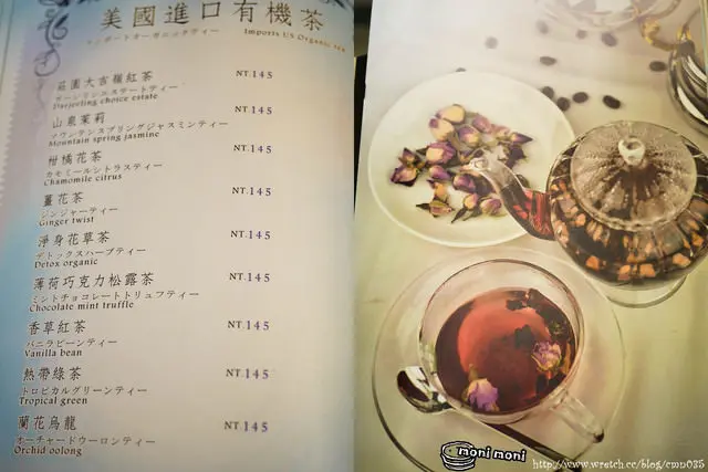 我們點了一壺美國有機茶 山泉茉莉口味,就有兩顆馬卡龍,相當划算,因為一顆本來是65元。