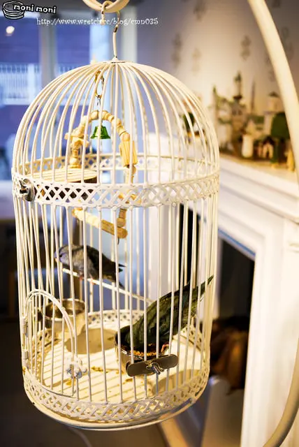 壁爐旁邊掛了個鳥籠,裡面有兩隻鳥,有一種活力的感覺,通常店裡面大家都比較常養狗或貓,這間店卻是用鳥來呈現活力的來源