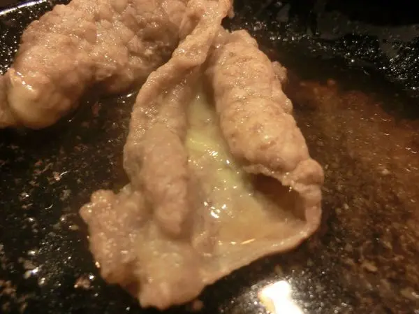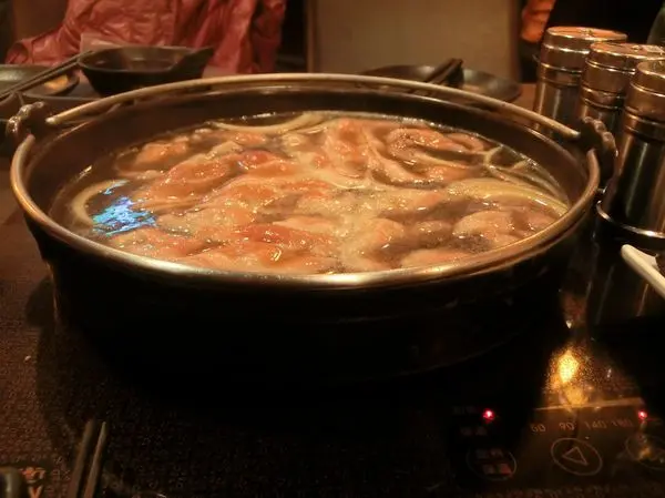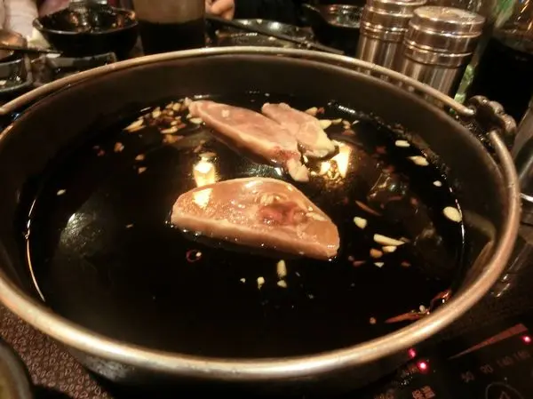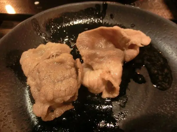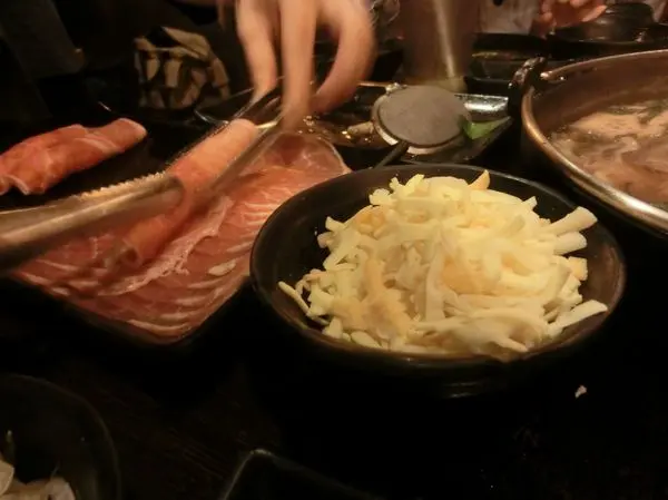 很快的就涮熟幾片讓我們享用了,剛開鍋的醬汁對我來說稍鹹,還是再加些水比較合味