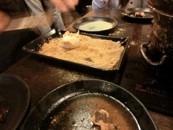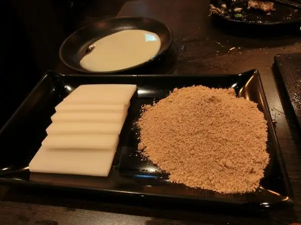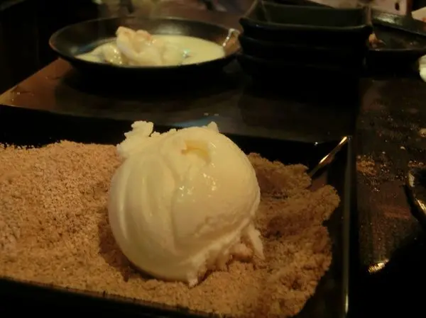 跟花生粉年糕不同,這個的口感偏脆,配著冰淇淋吃,嘴裏又冰又熱的超過癮,小鬼吃的很開心,直嚷著下回吃烤肉也要這樣玩