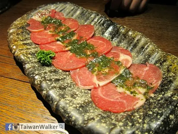 薄荷醬羊五花(NT160),我們有點牛舌,但照片不見了 lol 這是羊五花,以我記得他們的羊應該沒甚麼羊肉的膻味,因我沒有太深刻印象~ 薄荷醬不是平常吃西餐的那種甜薄荷醬, 薄荷味沒有很重