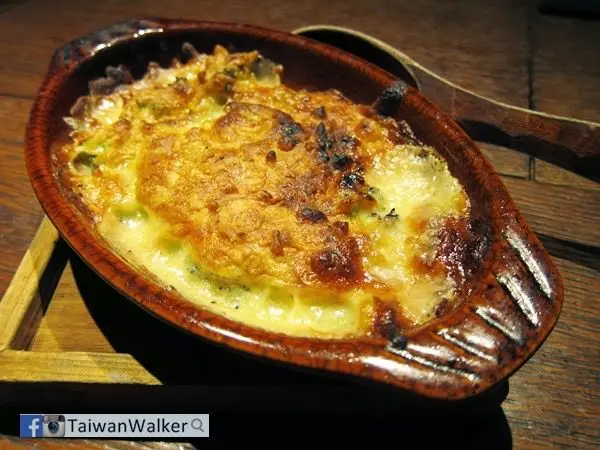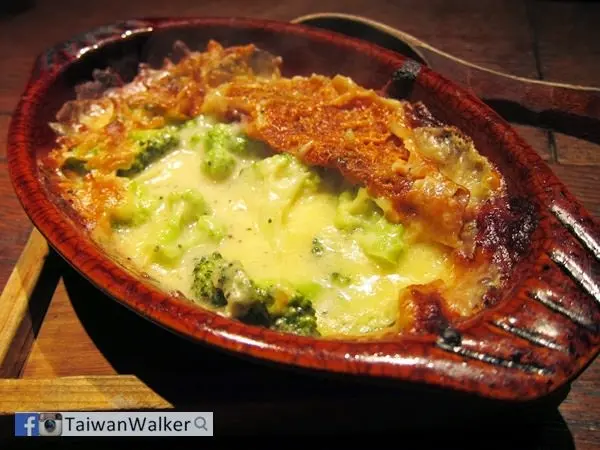 最後點了他們的綠花椰起士燒(120NT),我還以為是那種鋁箔紙放在爐上烤的那種,原來是一早在廚房烤好給我們吃。滿滿的起司包著綠花椰,綠花椰也沒有烤過熟,很難不好吃