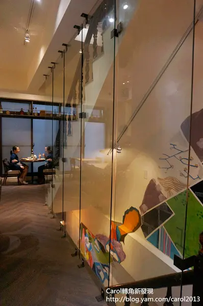 迪化街早期房屋屬於狹長型,樓梯牆面採用落地玻璃,