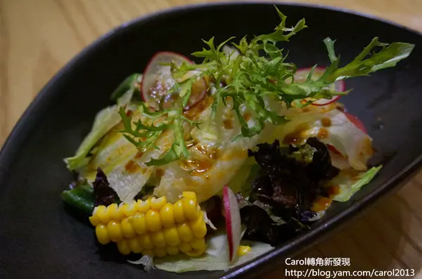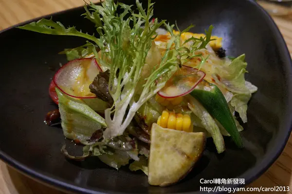 沙拉處裡的很好,盤底無多餘水分,種類十分豐富(地瓜、蕪菁、秋葵、玉米、生菜)