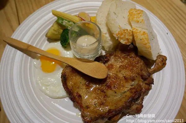 香料雞腿排香料滋味濃郁,肉質多汁軟嫩