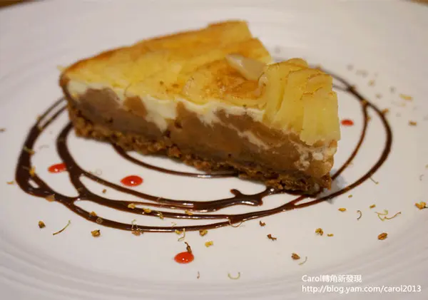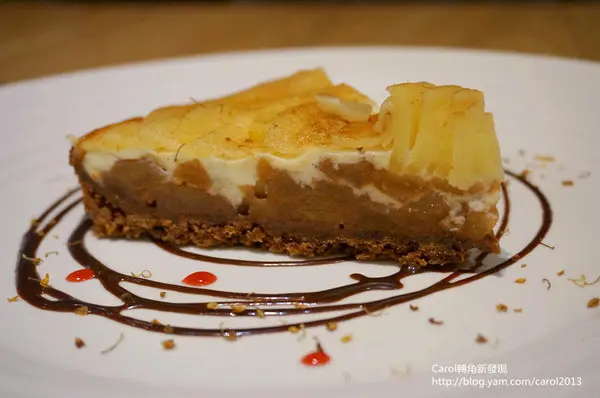 蘋果派底部派皮質地鬆散酥脆,有淡淡黑糖香氣,