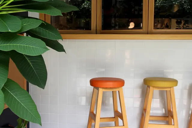 草泥Cafe 店門口,設計像是外帶吧窗口,三張色系可愛的高椅,也是台北Ig上時常出現的熱門景象。