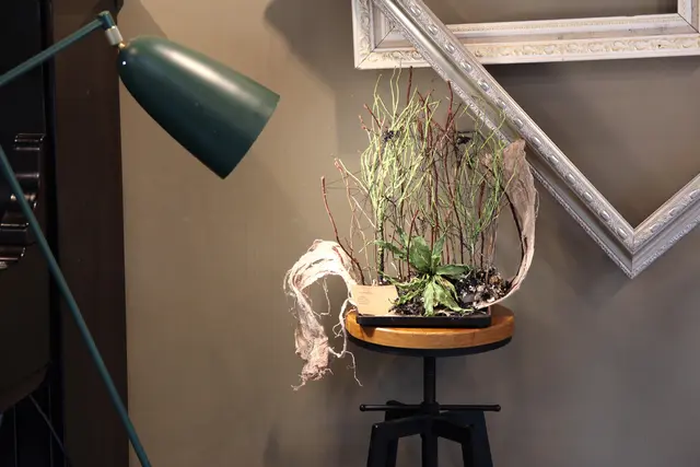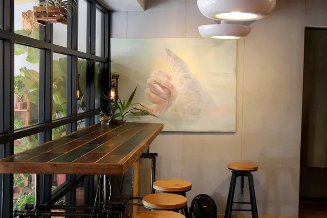 優雅地擺上一台鋼琴,牆上是台灣獨立藝術家的作品,目前也正展示著來自花疫室的藝術作品。