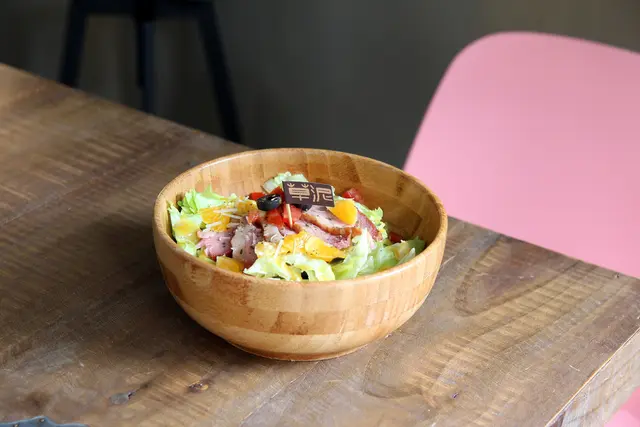 份量適合兩人一起分食的木盆沙拉系列,這一次我們點了主廚推薦的法式鴨胸沙拉,