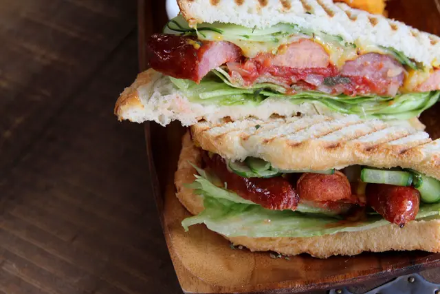 夏季新推出的雙腸帕尼尼料理,以德式與酒釀兩種香腸作結合,