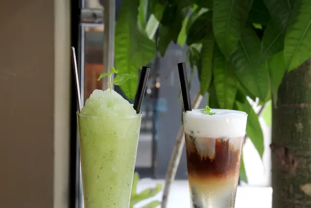 使用兩份濃縮咖啡,加上氣泡水、冰奶泡,與少許的糖,清涼消暑的漸層,喝起來是屬於較厚重的咖啡味,