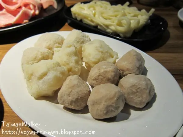 這些都是平常比較少吃的配料, 有蛋餃, 燕餃還有米血糕~