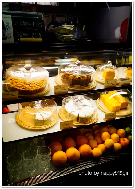蛋糕櫃裡的甜點選擇雖不多,每一款看起來都好好吃(真想各來一個)