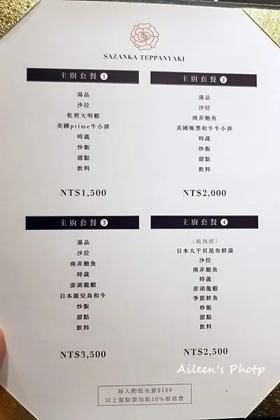 坐下之後服務人員會先送上菜單給我們參考,裡面有套餐的組合可以選擇,