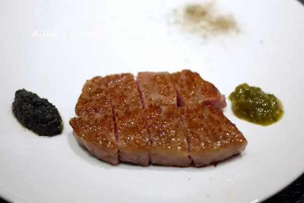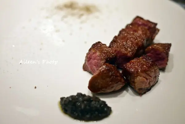 這個鹿兒島和牛沾上主廚特製的芥茉醬真的超對味的,加上魚子醬也非常的美味。