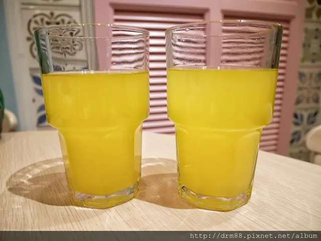 點好餐了。飲料先上了,飲料有金桔檸檬或紅茶,我們是選金桔檸檬,