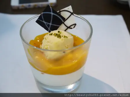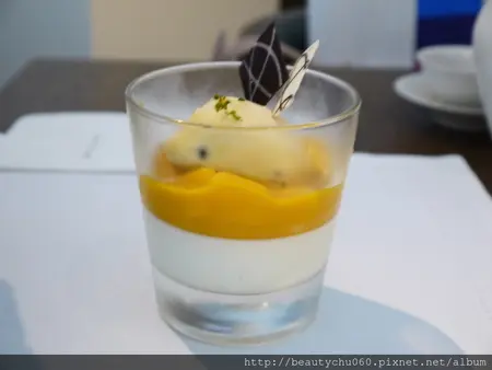這份甜點好有夏日的味道哦~~~芒果、百香果二者的味道好合