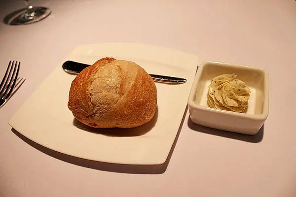 首先上的是麵包,麵包一上來就聞到濃濃的麵包香,麵包沒有看起來這麼硬,裡面相當鬆軟,非常不簡單