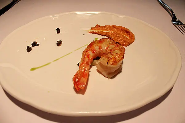 蝦子沒有很大隻,不過處理得很有層次,剝好殼靠近兩側的外層考得酥脆卻不焦,內層卻又富有蝦子的鮮美與Q彈,兩種口感搭在一起非常好吃!