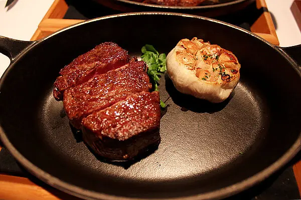點了店員建議的五分熟,完全不見血,火侯控制得宜,外皮烤得焦脆,裡面的牛肉卻相當軟嫩,完全有一千二的價值