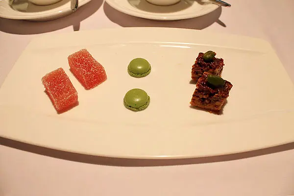 DANNY & COMPANY 整套吃下來最失敗的大概就是這盤了,只有右邊的還可以,中間的馬卡龍根本不能稱上是馬卡龍阿!!!! 就算只有餅皮還是不好吃,左邊的軟糖更是甜膩到我含下去馬上吐出來,比乖乖桶的軟糖還要甜,實在膩到非常不OK,總覺得這道不上的話今天還比較完美,可惜了 (((菸總結今天的餐點,除了最後一道之外都還不錯啦,我還是相當推崇鄧有癸師傅,總覺得只要掛上他的名號,主食就不會讓人失望,服務也很好,DANNY & COMPANY 絕對是頂級牛排必收的口袋名單。